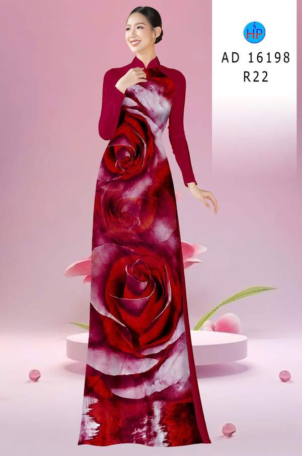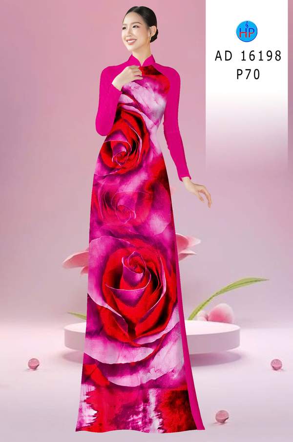Vải Áo Dài Hoa Hồng AD 16198