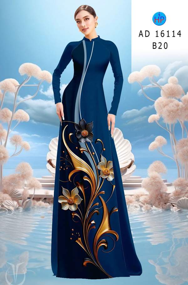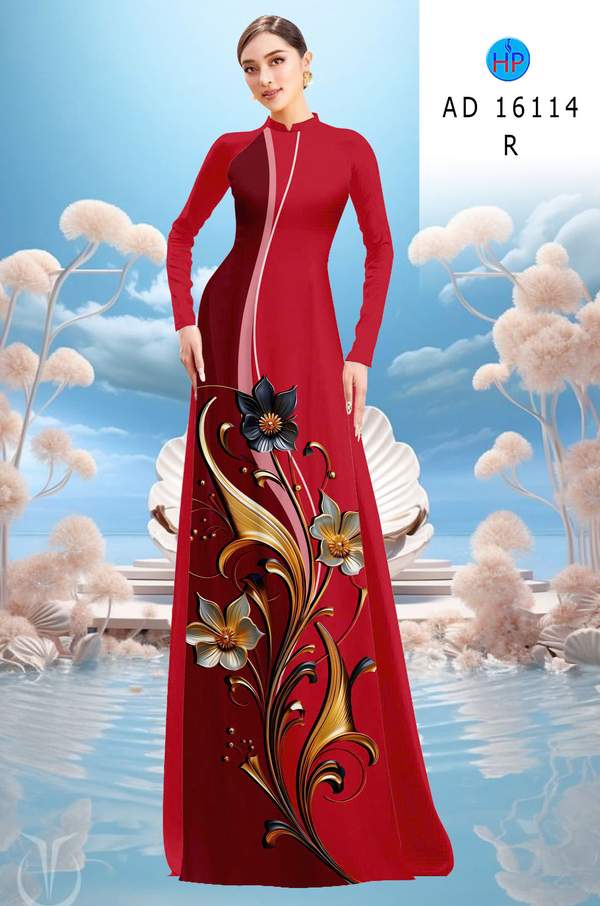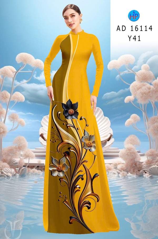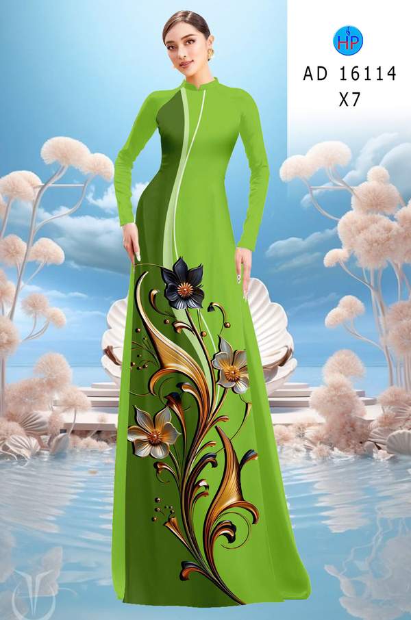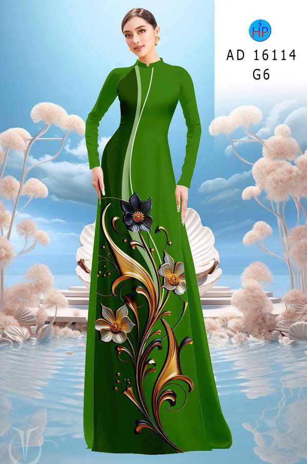 Vải Áo Dài Hoa In 3D AD 16114