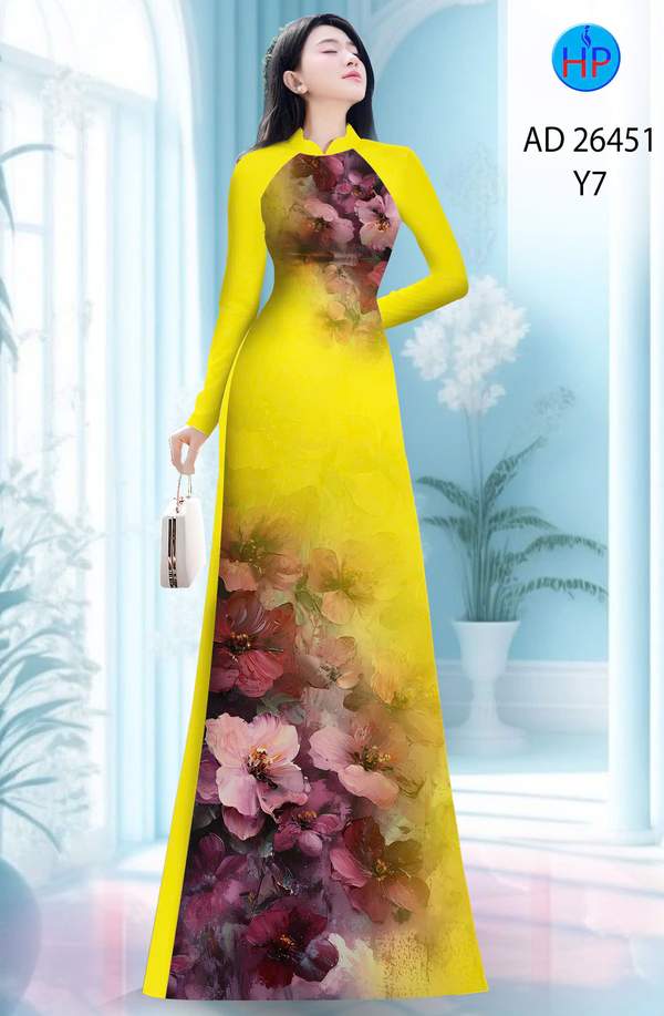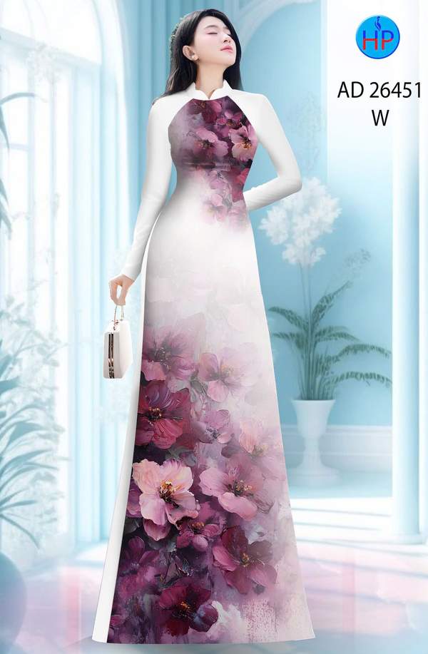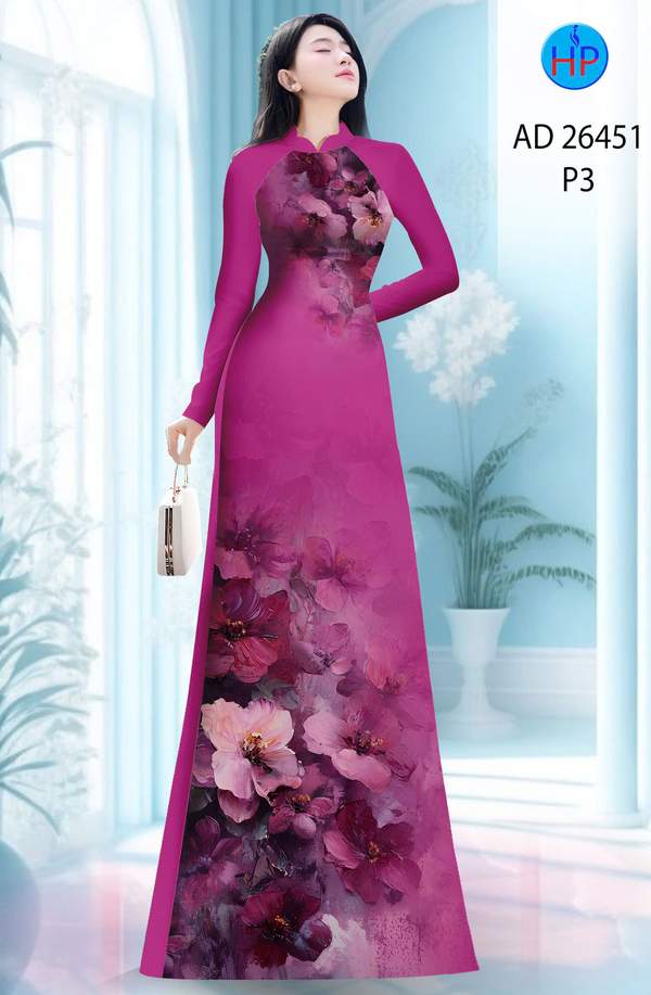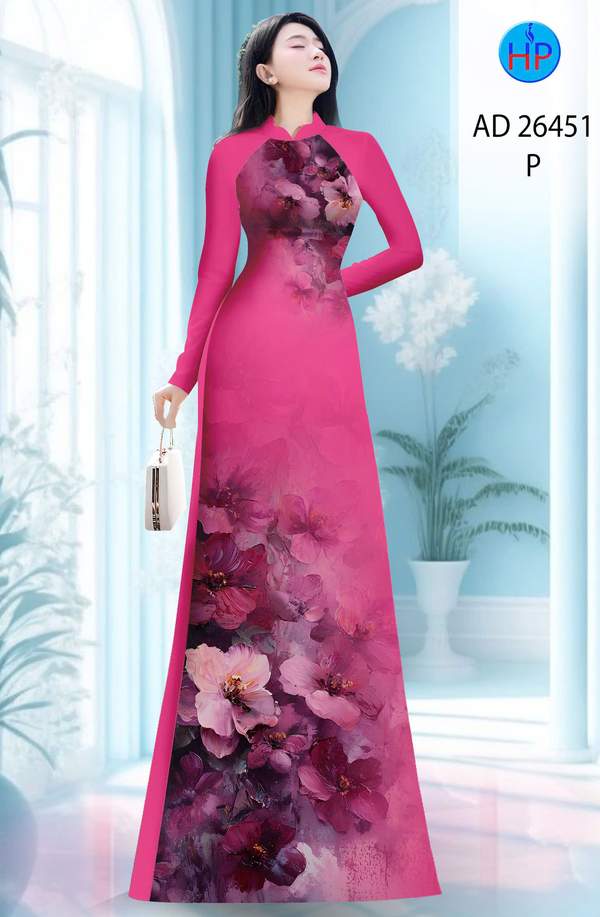 Vải Áo Dài Hoa In 3D AD 26451