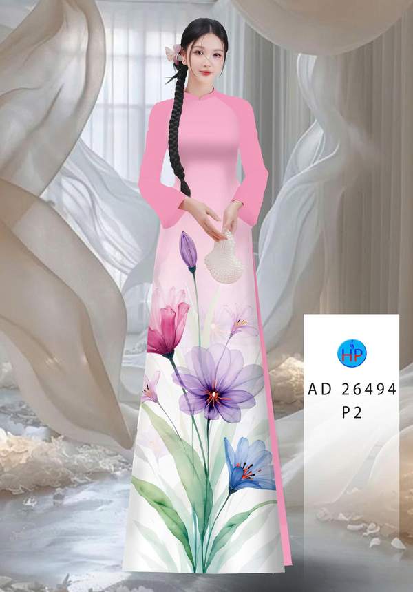 Vải Áo Dài Hoa In 3D AD 26494
