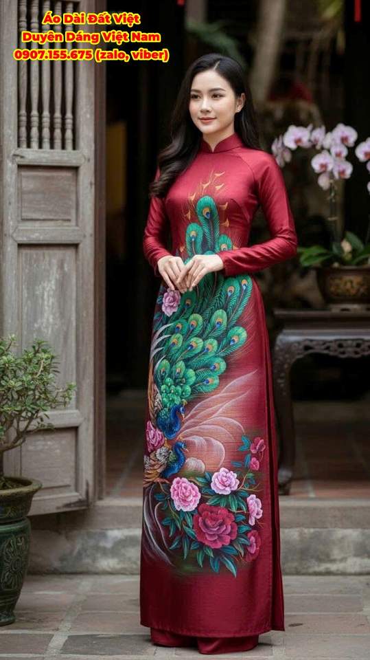 Vải Áo Dài Vẽ Tay Chim Công AD V51047
